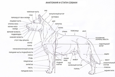• Длина морды от мочки носа до перехода чуть больше длины черепа от перехода до затылочного бугра.