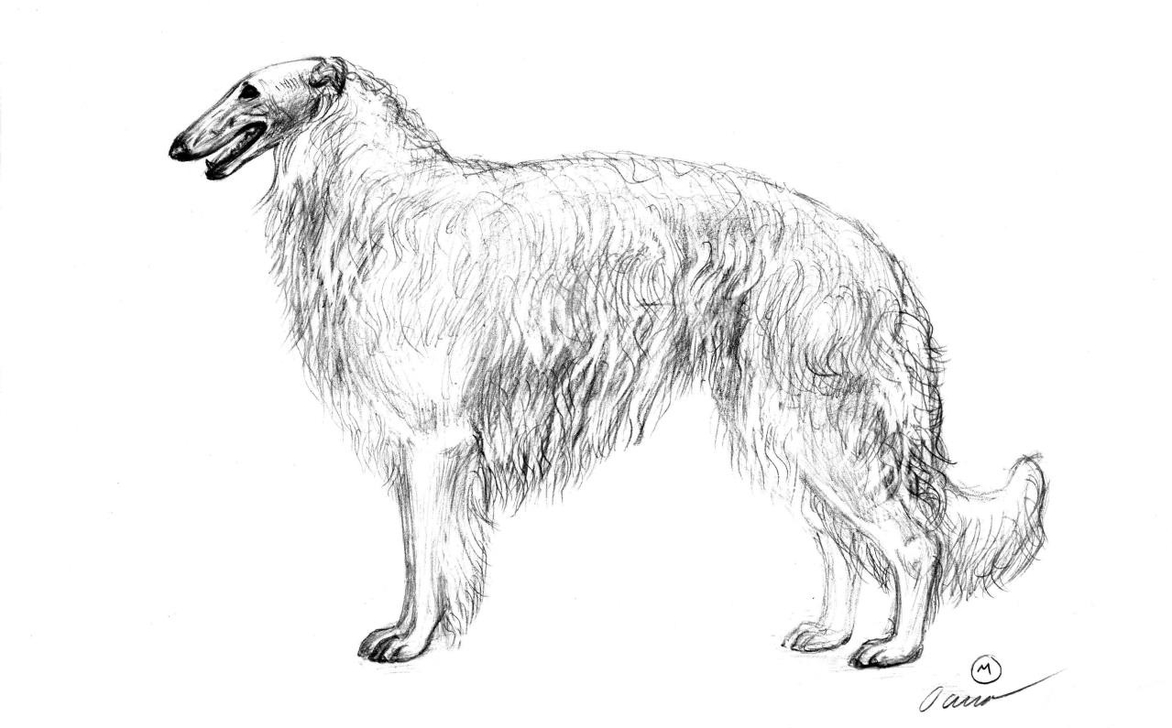 ОБЩИЙ ВИД: Русская псовая борзая – собака аристократической внешности и большого роста, сухая и крепкая, гармонично сложенная, весьма высоконогая и довольно узкотелая. Формат слегка растянут. Суки более растянуты, чем кобели.
